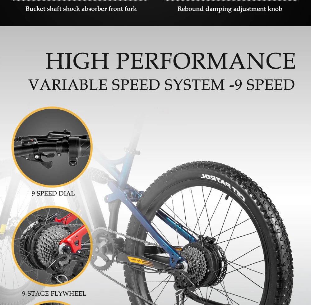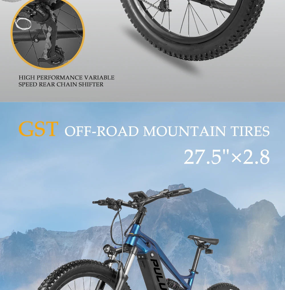 PULUMA Electric Bike 48V 1000W 27.5-in Panasonic battery 48V 20AH Smart electric with pedal assist hydraulic disc brakes