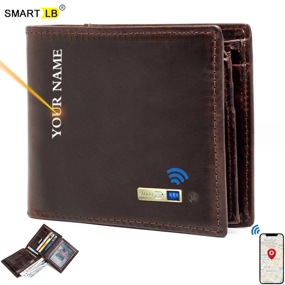 Smart Anti-lost Wallet -compatible Leather Short Credit Card Holders Male Coin Purse Genuine Leather Men Wallets Free engraving