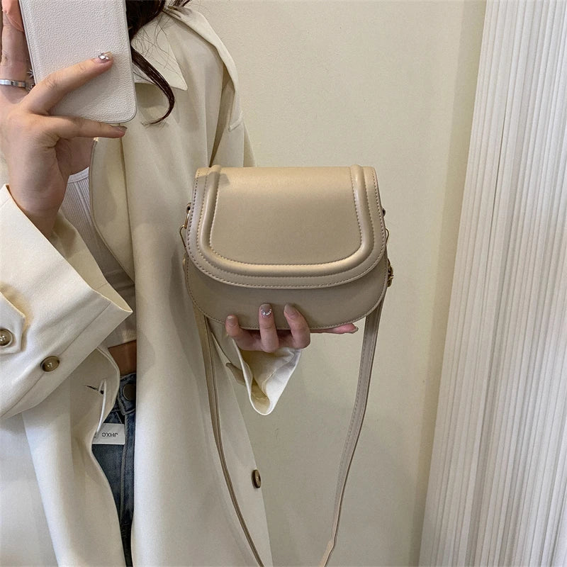 Bolsa transversal de PU de cor sólida retrô 2023 verão nova bolsa de ombro feminina simples e elegante com fecho fashion bolsa de axila combinada